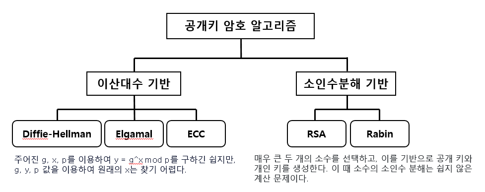- 디지털 서명, 키 교환을 위한 공개키 암호에 사용