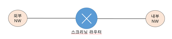 - 라우터 차원에서 IP, TCP, UDP 헤더 부분에 포함된 내용만 분석하여 동작하며, 내/외부 네트워크 사이의 패킷 트래픽 허용 또는 차단하는 패킷 필터링 규칙을 적용한다.