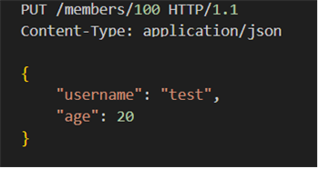 /members/100 리소스에 username값을 test로, age값을 20으로 변경한다.