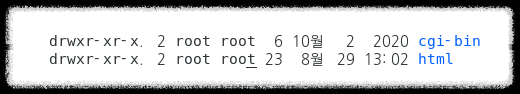 * 취약 - 불필요한 파일이 존재하는 경우(디폴트 cgi-bin이 존재 / 임시 파일, 백업 파일 등이 존재)